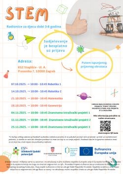 Kroz sedam termina radionica obradit će se teme iz STEM područja: robotike, matematike te znanstveno istraživački projekti. Radionice, organizirane u suradnji s udrugom Baza za razvoj i uz sudjelovanje djece iz DV Nemo, održavat će se utorkom, od 7. listopada do 25. studenoga 2025.Udruga Baza za razvoj sufinancirana je sredstvima Europske unije iz Europskog socijalnog fonda plus.