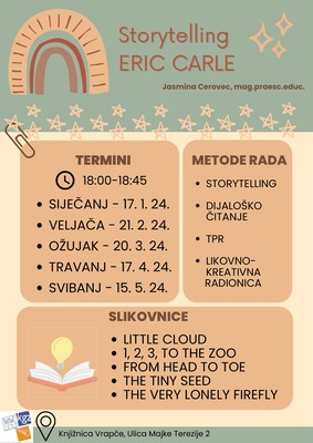 Storytelling je pričaonica na engleskom jeziku koju vodi Jasmina Cerovec, mag.praesc.educ.Program je namijenjen djeci od 4 do 6 godina s ciljem razvijanja interesa za engleski jezik.