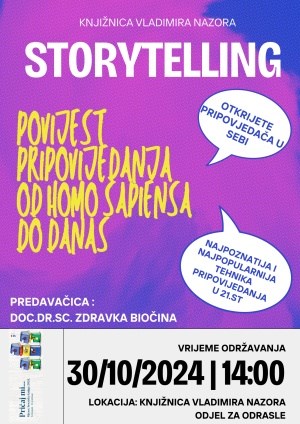 Pozivamo vas da u Mjesecu hrvatske knjige otkrijete pripovjedača u sebi jer storytelling kao najpoznatija i najpopularnija tehnika pripovijedanja u 21.st donosi brojne prednosti kako za predavača tako i za njegovu publiku. Osim što utječe na lakše pamćenje i praćenje sadržaja, što su dokazala i brojna neuroznanstvena istraživanja, postaje sve više i učinkovit alat u liderstvu te prenošenju složenih ideja.Doc. dr. sc. Zdravka Biočina podučit će nas kako je uspješno prezentiranje više od dobre prezentacije!