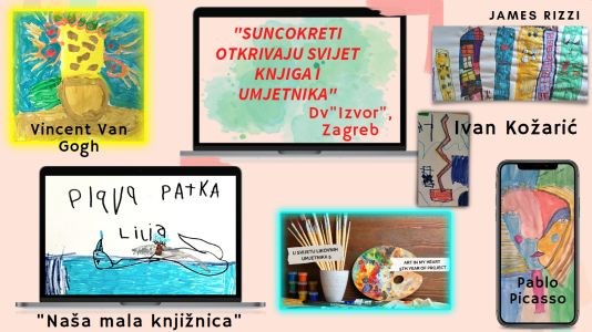 Izložba dječjih radova likovne skupine Suncokreti iz DV Izvor.Vođene interesom djece, njihovom neiscrpnom znatiželjom i istraživanjem u svijetu likovnosti, odgojiteljice Terezija Zakarić i Željka Kovačević Kruljac i ove godine odlučile su se za sudjelovanje u međunarodnom Erasmus+ projektu na eTwinning-u pod nazivom “U svijetu likovnih umjetnika 5”.