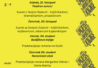 Tijekom Mjeseca hrvatske knjige ugostit ćemo nekoliko književnika kako bismo učenike OŠ Voltino upoznali s autorima koje čitaju.Srijeda, 22. listopad: Pozdrav suncu! Susret s Tanjom Radović - knjižničarkom, dramatičarkom, prozaisticom