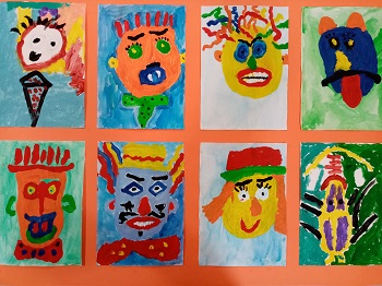Izložba obuhvaća razne dječje radove: maske, krinke i tradicijske maske.Tradicijske maske stvarane su u tehnici pastela i ugljena, a izradila su ih djeca odgojne skupine Zvjezdice. Maske u tehnici tempere izradila su djeca odgojne skupine Školjkice i Zvjezdice dok su maske od kolaža izradila djeca odgojne skupine Školjkice. Krinke su nastale zajedničkim radom odgojiteljica i djece odgojne skupine Tratinčice i koristeći špagu, karton i foliju. Trodimenzionalne maske načinjene su od neoblikovanog materijala: kutija, kartona, špage, vune, plastičnih čepova i papira.