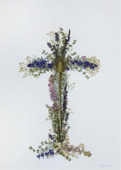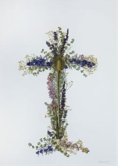 Dr. Nada Jačmenica duhovna i umjetnička nadahnuća pronalazi u tradicijskoj kulturi zavičaja, vlastitom iskustvu vjere i poznavanju tehnika oblikovanja cvjetnih kompozicija. Osim likovnih, dr. Jačmenica, jednako nadahnuto, služi se i pjesničkim izrazom, pa se ovom izložbom predstavlja kao slikar i kao pjesnik. Naslov "Ternova kruna" tematski je motiv ove izložbe. "Ternova kruna na zmučenom licu, / na sakom lasu kaplja i buol. / Hsehnule ruke i čavlji na duše, / človečja zluoča na ranu je suol." Cvjetnim kolažima na temu križa dr. Nada Jačmenica pokušava ublažiti težinu križa i pokazati da je u svakom križu prisutna i ljepota. To postiže njegovanjem cvjetnih herbarija od kojih sklada kompozicije. (...) Njeni križevi mala su remek djela umjetnosti aranžiranja (suhog) cvijeća proizašle iz, posve druge, japanske šinto religije i zen budizma koje božasnko slute u povezanosti s prirodom, krhkosti cvjetova vide analogno krhkosti ljudske duše, pri čemu egzistencijalna patnja nije samo svojstvo čovjeka. Dubokom sabranošću (u zapadnjačkoj tradiciji molitvom) patnja se prevladava mirom i ljepotom., piše autorica teksta pozivnice, Marija Lamot.