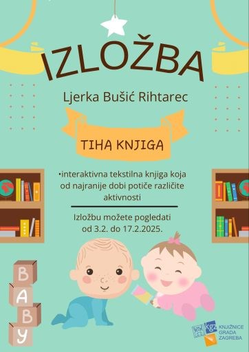 Izložba slikovnica od tekstila autorice Ljerke Bušić Rihtarec inspirana je bajkama za djecu.Interaktivna tekstilna knjiga od najranije dobi potiče različite aktivnosti.
