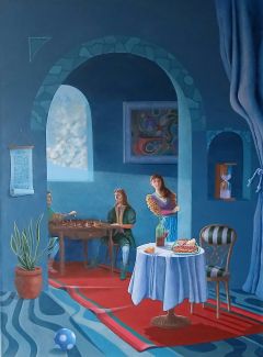 Dalek od poplave novih trendova, pravaca, smjerova suvremene (likovne) umjetnosti, u zavjetrini od gradske vreve i buke, besmislene užurbanosti, jeftine i nasrtljive senzacionalnosti, Tomislav Turković polako i spokojno tka svoju životnu priču i pretače svakodnevne dojmove na bjelinu platna.Autor slike izgrađuje sjedinjavanjem prenesenih citata iz djela/slika starih majstora, ali ih predočuje u novom preoblikovanom kontekstu. Vrela su tih citata uglavnom iz renesanse i baroka, ali i iz simbolizma, fantastičnog realizma i metafizičkog slikarstva.