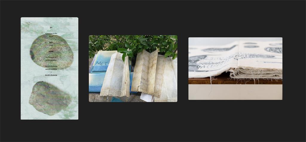 Sva tri rada razvijaju se u tekstu, odnosno jeziku kao trajnom materijalu kultura u kojemu se kultura i stvara i njime je definirana. Jezik pri tome koriste arbitrarno, mijenjaju kontekste, preuzimaju pisma, prevode u druge jezične, simboličke i izražajne sisteme. U tim transliteracijama pokušavaju fiksirati ono što je prolazno, neuhvatljivo, potisnuto ili potrošno.