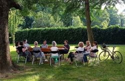 Ovom se izložbom prisjećamo ne tako davnih vremena kad su druženja uživo bila normalna pojava i kad nismo trebali brinuti o maskama, održavanju razmaka i inim ograničenjima. Ona je podsjetnik na to da je knjižnica živahno i frekventno mjesto namijenjeno okupljanjima, čitanjima i živim diskusijama, ujedno i iskaz nade da će to opet postati.