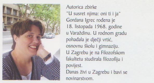 PROMOCIJA KNJIGE GORDANE IGREC U SUSRET NJIMA ONI, TI I JAGosti: Voditeljica književne večeri prof. Tatjana Novosel
