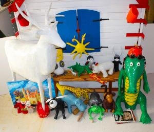 Likovi koje možete razgledati u izlozima naše knjižnice nastali su inovativnom autorskom likovnom reciklažnom tehnikom, koja recikliranjem starih novina i PVC vrećica ili kartonskih kutija omogućuje jednostavno oblikovanje čvrstih objekata ili likova. Tako su izloge i prostor knjižnice oživjeli Suli, Kroko, Trnoružica, Kraljica i Kralj, Bijeli jelen, Ježurka Ježić, Lija, Vepar i ostali likovi junaka i životinja poznatih književnih djela za djecu.