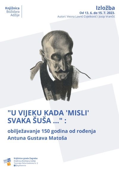 U Knjižnici Božidara Adžije od 13. lipnja do 15. srpnja 2023. godine možete pogledati izložbu knjiga, fotografija i plakata pod nazivom „U vijeku kada 'misli' svaka šuša”...: 150 godina rođenja Antuna Gustava Matoša.Povod za proslavu je i pola stoljeća od kada se na tribini Književnog petka govorilo o AGM-u: prvi put 12. siječnja 1973., a drugi put na isti datum nakon devet mjeseci. Iz transkripta tribine može se iščitati da se filolog i stilist Krunoslav Pranjić pozabavio njegovim jezikom i stilom o čemu je pisao u nekoliko navrata, u Jeziku i književnom djelu te u Jeziku i stilu Matoševe pripovjedačke proze. O Gustlovome djelu drugi put su raspredali pjesnik Dragutin Tadijanović, slavist Nedjeljko Mihanović te teatrolog i kazališni kritičar Nikola Batušić. Povod za te tribine bila je stogodišnjica piščeva rođenja, a time je bila potaknuta i Jugoslavenska akademija znanosti i umjetnosti za izdavanje Sabranih djela Antuna Gustava Matoša u 20 svezaka, a spomenuti trojac urednički je djelovao.