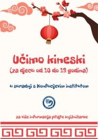 Radionice učenja osnova kineskog jezika i kulture za djecu od 10 do 13 godina s izvornim govornicima u suradnji s Konfucijevim institutom Sveučilišta u Zagrebu.Treći konverzacijski tečaj traje 9 tjedana s dinamikom nastave jednom tjedno po 60 minuta.