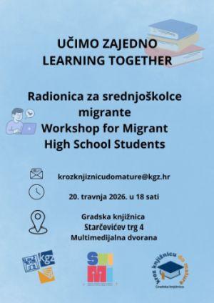 U okviru programa „Kroz knjižnicu do mature“ održat će se radionica „Učimo zajedno“, namijenjena srednjoškolcima migrantima koji žele bolje razumjeti hrvatski jezik i uspješnije pisati eseje.Kroz rad na primjerima prošlih ispita polaznici će vježbati pravopis, gramatiku i pisanje eseja, korak po korak, u opuštenom i poticajnom okruženju.
