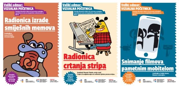Prostor Čitaonice i Galerije VN već dugi niz godina funkcionira kao mjesto susreta umjetnika i publike. U narednim godinama želimo proširiti doseg utjecaja na djecu i mlade. Sukladno svjetskim trendovima i istraživanjima potreba korisnika knjižnica i osnovnoškolaca, izložbeni prostor Galerije VN, otvaramo kao mjesto susreta i dnevnog boravka za mladu publiku.Osmislili smo radionice za djecu pod nazivom Veliki odmor: VIZUALNA POČETNICA.