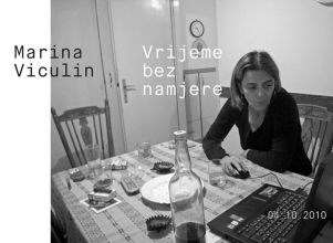 Knjiga MARINA VICULIN: VRIJEME BEZ NAMJERE sadrži sedamdesetak tekstova povjesničarke umjetnosti, kustosice i nekadašnje ravnateljice Klovićevih dvora, Marine Viculin koje je pisala tijekom jedanaest godina između 2004. — 2014., do svoje preuranjene smrti početkom 2015. godine.Tekstovi u knjizi podijeljeni su u dva poglavlja, od kojih svaki predstavlja jednu od višegodišnjih ciklusa izložbi koje je Marina Viculin inicirala, vodila i organizirala: Brzo okidanje/Snapshot 2004. —2014., u svojoj matičnoj kući, Galeriji Klovićevi dvori u Zagrebu i seriju izložbi u galeriji Waldinger 2007. — 2014., u Osijeku.