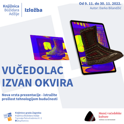 U nastojanju očuvanja sjećanja na Domovinski rat i obilježavajući Dan sjećanja na žrtvu Vukovara 2022. godine, u prostoru slobodnog pristupa Knjižnice Božidara Adžije postavili smo gostujuću izložbu Muzeja vučedolske kulture “Vučedolac izvan okvira“, autora Darka Bilandžića. Riječ je o deset plakata na kojima u pop art stilu s digitalnim sadržajem, 3D modelima, tekstovima, audio i video sadržajima koje “skrivaju” plakati, posjetitelj pristupa putem aplikacije na tabletu te tako istražuje prošlost tehnologijom budućnosti.Inovativnim proširenjem digitalne stvarnosti omogućen je novi doživljaj arheoloških predmeta i drugih eksponata Muzeja među kojima se nalaze lubanja Vučedolca, vučedolska čizmica i terina, odjeća starih Vučedolaca kao i tetovaže kojima su se oslikavali prije 5000 godina.