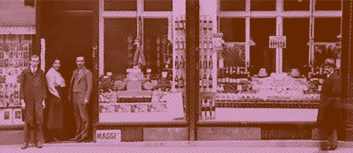 Fotografija trgovine delikatesa i južnog voća u Marovskoj 3, danas Masarykova, vl. Josip i Ana Grosso; 1920-ih.