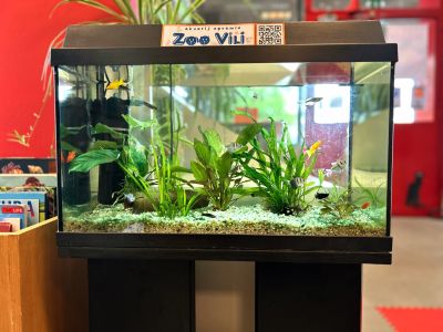 Izložbom se žele dati osnovne informacije o akvarijiskim ribicama kao kućnim ljubimcima.Uz kratke opise riba koje se nalaze u knjižničnom akvariju izložene su znanstveno - popularne knjige o akvaristici.