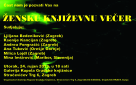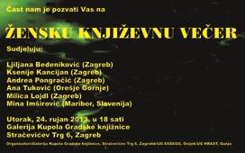 Na književnoj večeri u Galeriji Kupola predstavit će se pjesnikinje Ljiljana Bedeniković, Ksenija Kancijan, Andrea Pongračić, Ana Tuković, Milica Lojdl i Mina Imširović.
