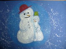 Slike zime, snjegovići, kapice, čizmice, anđeli…..izrađeni su u različitim likovnim tehnikama - crtanje vodenim bojama i pastelama , kolaž, modeliranje krep papira i alu-folije, decoupage…