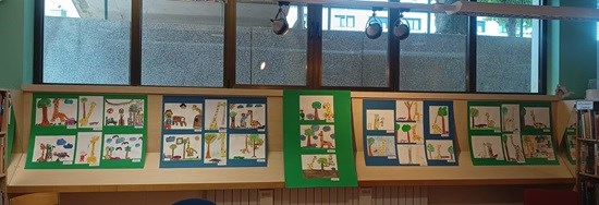 Na panou dječjeg odjela Knjižnice Sesvete postavljena je izložba likovnih radova učenika 2.a i 2.b razreda OŠ Sesvetska Sela koja je nastala u školskom radu, a nakon sudjelovanja u radionici Kolaž prijateljstva u sklopu manifestacije Noć knjige 2025. godine.Tom su prilikom učenici poslušali jednu od Pjegastih priča Renate Piatkowske: Žirafa te potom razgovarali o najdražim im životinjama. Nakon susreta u knjižnici djeca su u školskom radu pod mentorstvom svojih učiteljica Jasminke Španić i Ksenije Borović u tehnici akvarela s olovkom i flomasterom likovno predstavila svoj doživljaj priče.
