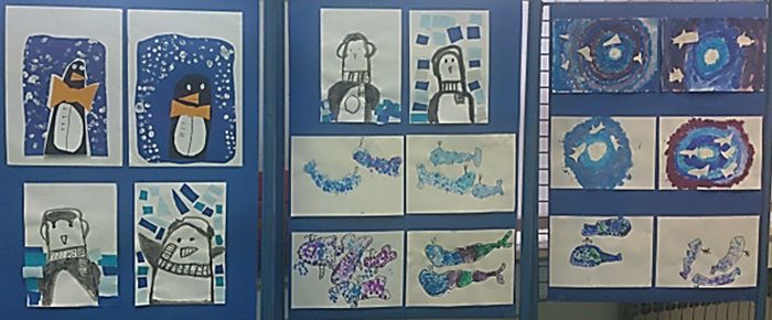 Izložba likovnih radova djece1.e razreda OŠ Augusta Šenoe učiteljice Petrunjele Krajačić, na temu Životinje polarnih krajeva.