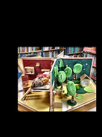Zlatokosi i tri medvjedića. Izrađena je od različitog materijala koji tvori svijet u kojem se kreću likovi potičući djecu da i sama interveniraju te sama osmisle i nadopune osnovnu priču. Slikovnica je izložena u prostoru Knjižnice i može se slobodno razgledati svakog radnog dana.