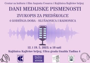 Knjižnica Kajfešov brijeg i Centar za kulturu i film Augusta Cesarca, organiziraju slušaonice i radionice za djecu pod nazivom „Četiri godišnja doba“. Slušajući zvučne razglednice na temu godišnjih doba polaznici će učiti o mediju radija, njegovim mogućnostima i načinima izražavanja. Doznat ćemo: kako proizvesti zvuk kiše ili fijuk vjetra svojim tijelom, tko je bio Petar Hektorović, za čime traga šumska ekipa i još puno toga.Dani medijske pismenosti odvijaju se u organizaciji Agencije za elektroničke medije i Ureda UNICEF-a za Hrvatsku, u suradnji s brojnim partnerima i uz podršku Ministarstva kulture i medija i Ministarstva znanosti i obrazovanja. Slogan ovogodišnjih Dana medijske pismenosti je “U ravnoteži – online i offline” i fokus je na utjecaju medija i društvenih mreža na mentalno zdravlje djece i mladih, na problemu dezinformacija, te važnosti kritičkog promišljanja i medijskog obrazovanja.