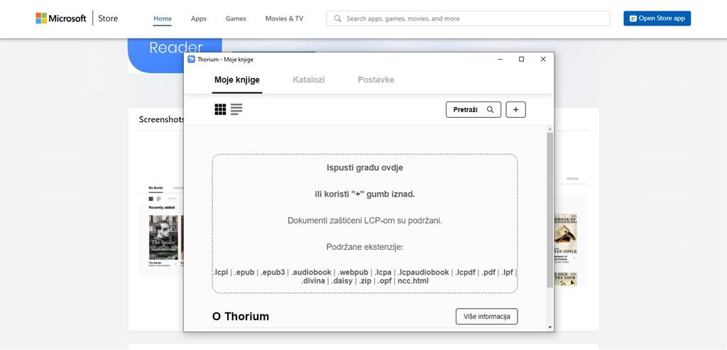 Za čitanje i slušanje e-knjiga i zvučnih e-knjiga na računalima Knjižnice grada Zagreba preporučuju aplikaciju Thorium reader. Pritiskom na odgovarajuću poveznicu preuzimate aplikaciju Thorium Reader.![]() |
