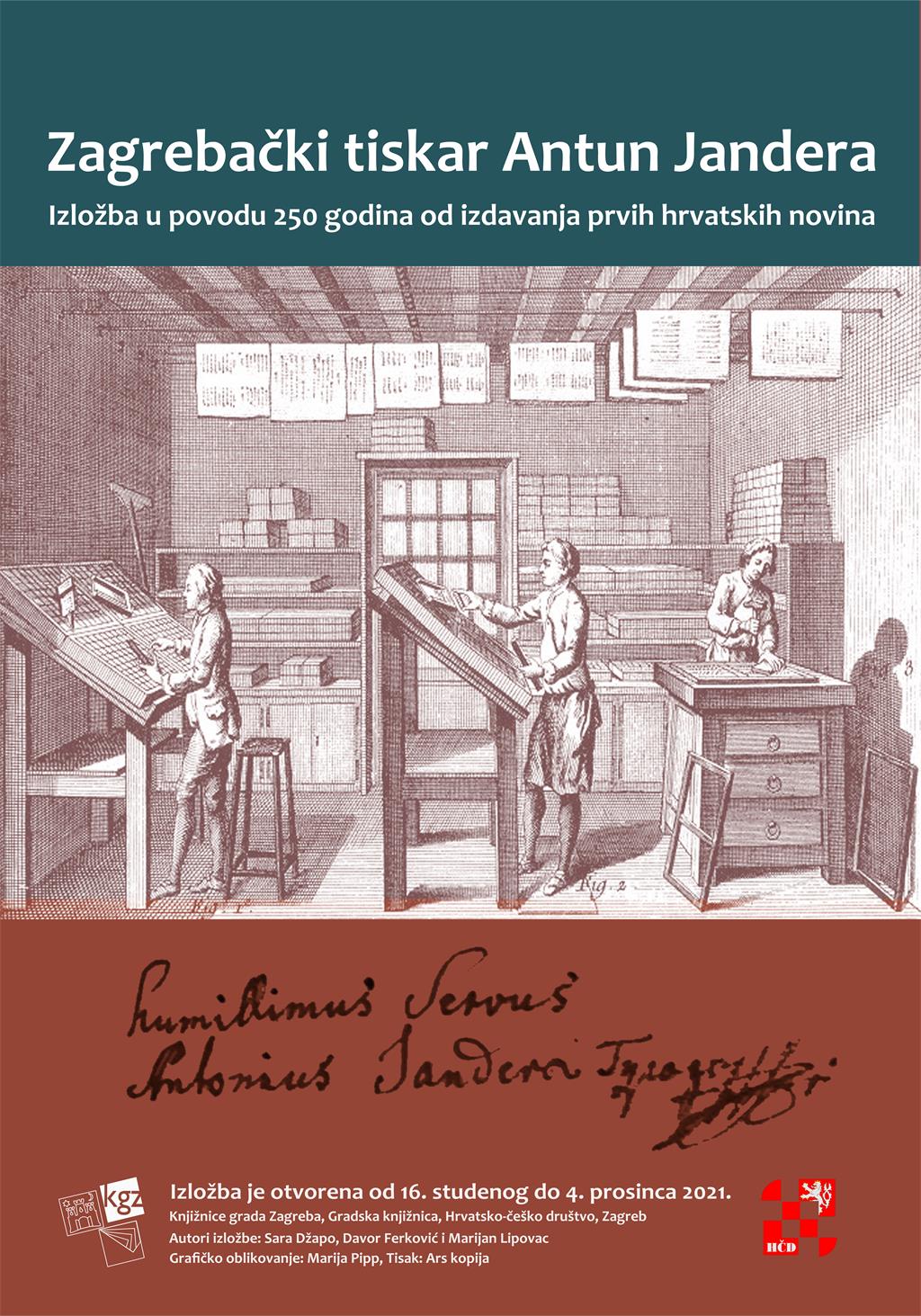 Gradska knjižnica u Zagrebu u suradnji s Hrvatsko-češkim društvom organizira izložbu Zagrebački tiskar Antun Jandera: izložba u povodu 250 godina od izdavanja prvih hrvatskih novina, od 16. studenog do 4. prosinca 2021.