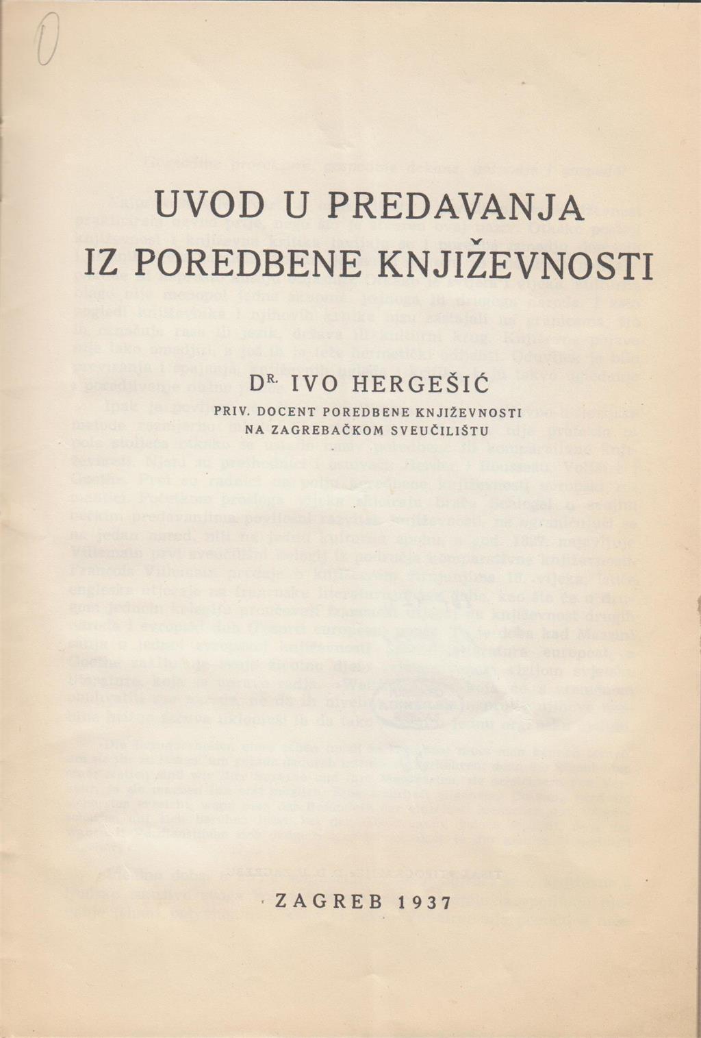 Poredbena ili komparativna književnost (1932.). 1936. postaje docent na Sveučilištu u Zagrebu, ali zamisao o utemeljenju