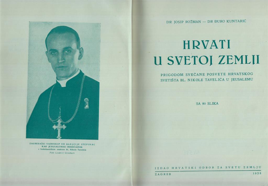 Slika i naslovna stranica knjige koja uz 80 fotografija Ljudevita Griesbacha i dr. Josipa Andrića dokumentira svečano hodočašće Hrvata, Slovenaca i Čeha u Svetu Zemlju godine 1937. Hodočašće je predvodio zagrebački nadbiskup, konsekrator prvog hrvatskog svetišta u Svetoj Zemlji, posvećenoga bl. Nikoli Taveliću, kardinal Alojzije Stepinac. Hrvatski jeruzalemski križ za hodočašće izrađen je u stolarskoj radionici jeruzalemskog franjevačkog samostana, a na jednom dijelu Križnoga puta nosio ga je osobno blaženi Alojzije Stepinac, kao što je, nakon završetka Drugog svjetskog rata i dolaska nove vlasti, ponio križ zajedno sa svojim hrvatskim narodom, pretrpjevši montirani sudski proces, zatočeništvo i mučeničku smrt.