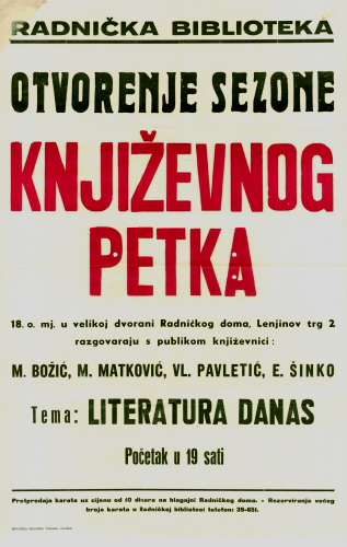 Književni petak 148 (16. 5. 1960.) Radnička biblioteka Dvorana H