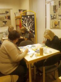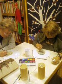 Prva likovna radionica u Knjižnici Podsused održana je 24.11.2010. Tom prigodom izrađivali smo novogodišnje čestitke u batik tehnici.