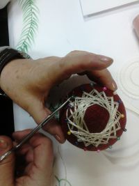 Kuglica za bor (4. i 18.12.2013. - temari tehnika, kuglica od konca).