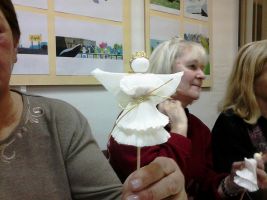 Pa na vrijeme započeli s ukrasima za nadolazeće blagdane - Anđeli od krep papira, voditeljica radionice Slavica Birošević (12.11. 2014.)