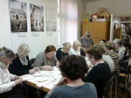 pa se podsjetili izrade narukvica u makrame tehnici. Voditeljica radionice Gordana Marak (18.3.2015.)