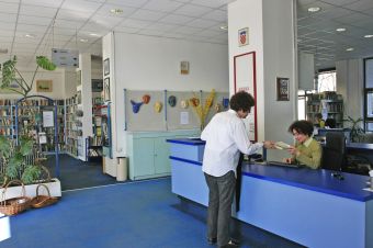 Informativno-posudbeni odjel, uz usluge posudbe knjiga, korisnicima pruža informacije o traženim i aktualnim naslovima, knjižničnim uslugama i raznovrsnim kulturnim događanjima u Knjižnici. Dežurni informatori korisnicima pomažu u pronalaženju literature za izradu seminarskih, maturalnih i diplomskih radnji te u korištenju aplikacije e-zaki i novih usluga kao što su posudba e-knjiga i online upis. U okviru odjela, na centralnom panou, postavljaju se tematske izložbe knjiga i druge građe te likovne izložbe.