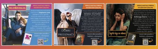 U rujnu 2021. godine započeli smo rubriku u kojoj svake subote ukratko predstavljamo seriju nastalu prema književnom predlošku. Mnoge ste sigurno pročitali i pogledali, za neke možda niste znali; a u nastavku možete vidjeti što je sve, prije nego što je dospjelo na TV ekrane i streaming servise, nastalo u obliku knjige! Rubriku SERIJE NASTALE PREMA KNJIŽEVNIM DJELIMA uređuje knjižničar Luka Semenski. Serije su poredane abecednim redom.