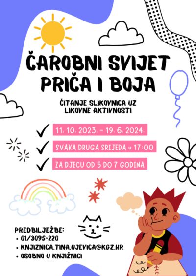 Čitanje slikovnica uz likovne aktivnosti za djecu od 5 do 7 godina svake srijede u 17 sati. VIŠE