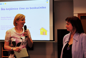 Knjižnice grada Zagreba oduvijek su se u svom radu vodile za načelom jednakih mogućnosti u pristupu informacijama, znanjima i kulturnim dobrima za sve, pa tako i beskućnike. Knjižničarka Sanja Bunić je tako govorila o projektu „Knjigom do krova“ u sklopu kojeg se održavanju radionice informatičke i informacijske pismenosti, te radionice podrške u traženju posla o čemu je govorila psihologinja Dragana Knezić iz Rehabilitacijskog centra za stres i traumu. Istaknula je kako rad s beskućnicima nije jednostavan, jer ih je teško motivirati zbog čega je potrebno osmišljavati dugotrajnije programe.