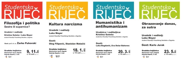 Ciklus tribina nastao u suradnji Knjižnica grada Zagreba - Gradske knjižnice i Filozofskog fakulteta Sveučilišta u Zagrebu, u prve dvije sezone Odsjeka za filozofiju, a u trećoj s Odsjekom za komparativnu književnost.Cilj programa je da se studentskoj populaciji omogući javno propitivanje tema koje ih zaokupljaju, u razgovoru sa sugovornicima koje sami odaberu, u prostoru Gradske knjižnice, kao i u online dostupnoj snimci tribine.