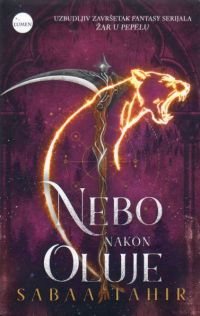 Nebo nakon oluje završni je roman serijala Žar u pepelu. Nekoć zatočeni džini napadaju i harače selima i gradovima. Dok pokušavaju razumjeti mračno proročanstvo o kraju svijeta, oko Laie, Eliasa i Helene raste posvemašnji kaos. Rat je neizbježan i svatko će platiti cijenu. Ali ipak i u svom tom mraku oni pronalaze snagu da ustraju i da se bore do kraja.Prethodni naslovi serijala: